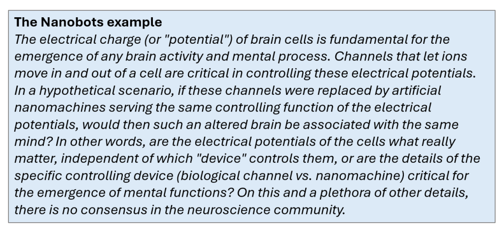 Hence, it is reasonable to assume that if the structural integrity of someone’s brain is preserved at the resolution of individual proteins, this suffices to capture the brain’s structural and electrochemical properties that define a person’s mind.